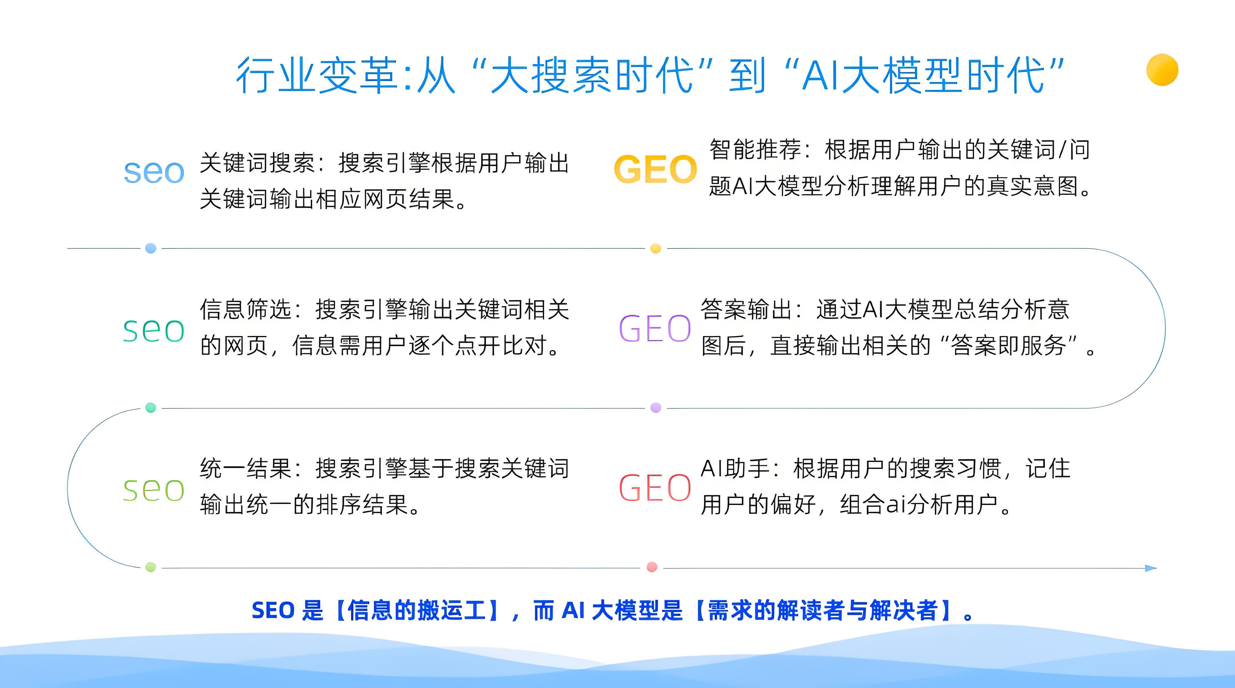我们是一家专注于重构营销的AI搜索优化服务商,通过人工智能技术深度洞察用户意图,为企业提供精准的搜索优化与内容策略,驱动品牌在搜索引擎中高效获客,实现可持续增
